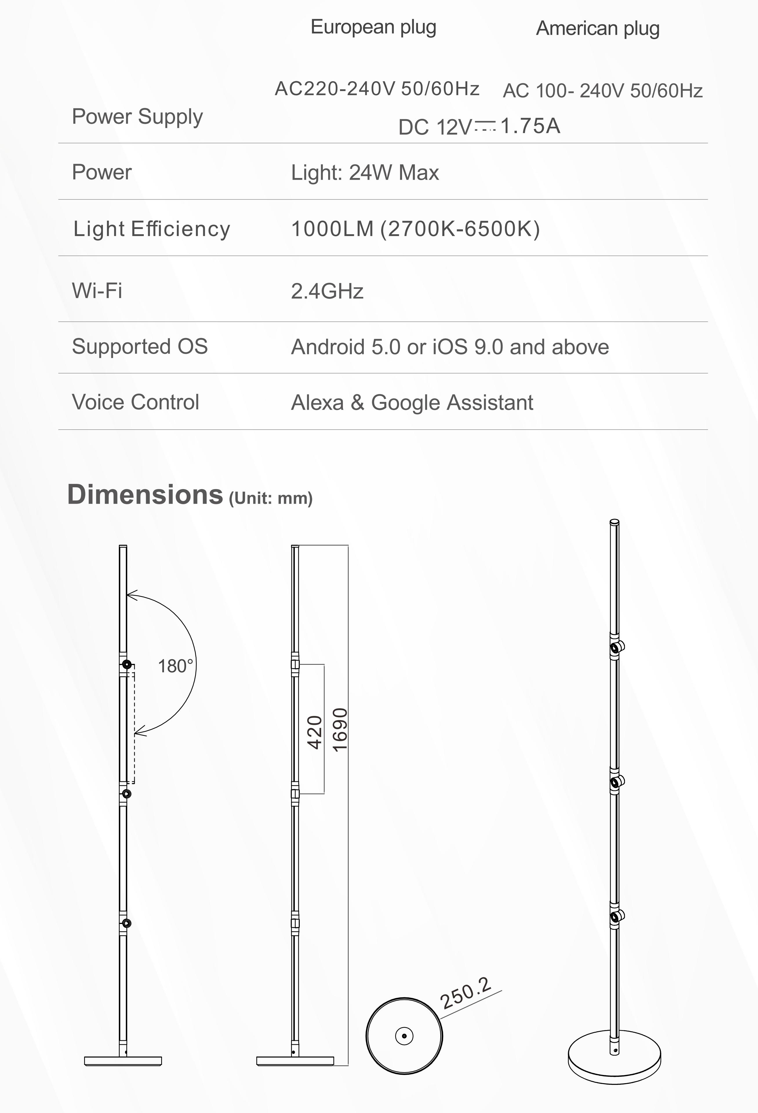 One Lamp, Multiple Shapes: Decktok smart foldable floor lamp offers a truly customizable lighting experience. DIY its shape, color and brightness for any space! Rotate & Tilt for the Perfect Light: Each module rotates horizontally up to 270° and tilts vertically up to 180°, giving you the flexibility to direct light exactly where you need it. Efficient & Long-lasting: Enjoy energy-efficient lighting that lasts. The Decktok foldable corner floor lamp consumes only 24W of power while providing a bright 1200LM light with a lifespan of 50,000 hours. Smart Control: Adjust brightness, color, and more through the intuitive DeckTok app. Voice Control Made Easy: Use voice commands to control your lamp. No need to lift a finger—simply ask Alexa or Google Assistant to adjust the settings.