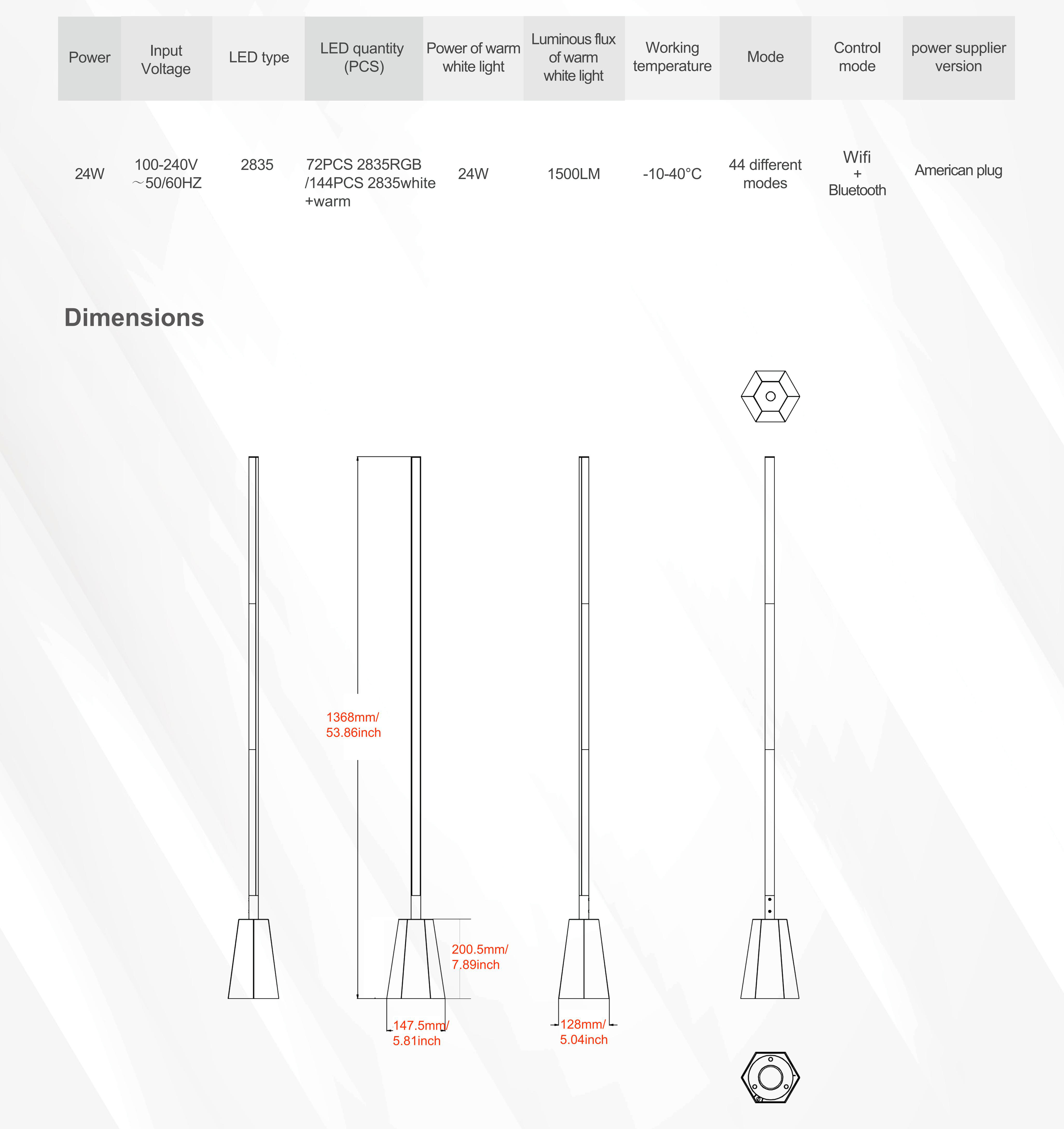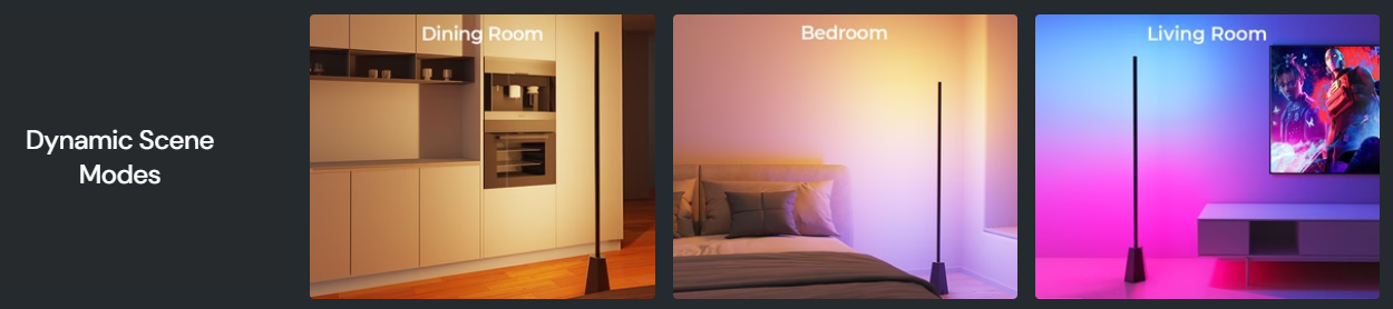 Segmented RGBWW Light Control: Customize your vibe with 12 independently controllable segments. Choose from 16 million colors and fine-tune whites between 2700K–6500K to match any mood. Powerful Brightness & Extended Coverage: Delivering up to 1500 lumens and deeply set lamp beads, the light reaches further for broader, softer wall washes. Immersive Music Sync & Voice Control: Built with 9 music modes and responsive voice control, your lights pulse and shift with sound, adding rhythm to every moment. 44+ Scene Modes & Smart Features: Instantly switch between 44 preset lighting scenes or set timers and brightness levels for full control over your environment—day or night. Modern Aesthetic, Engineered for Atmosphere: Designed with an aluminum profile and slim footprint, this floor lamp blends effortlessly into your décor while making a bold visual statement.