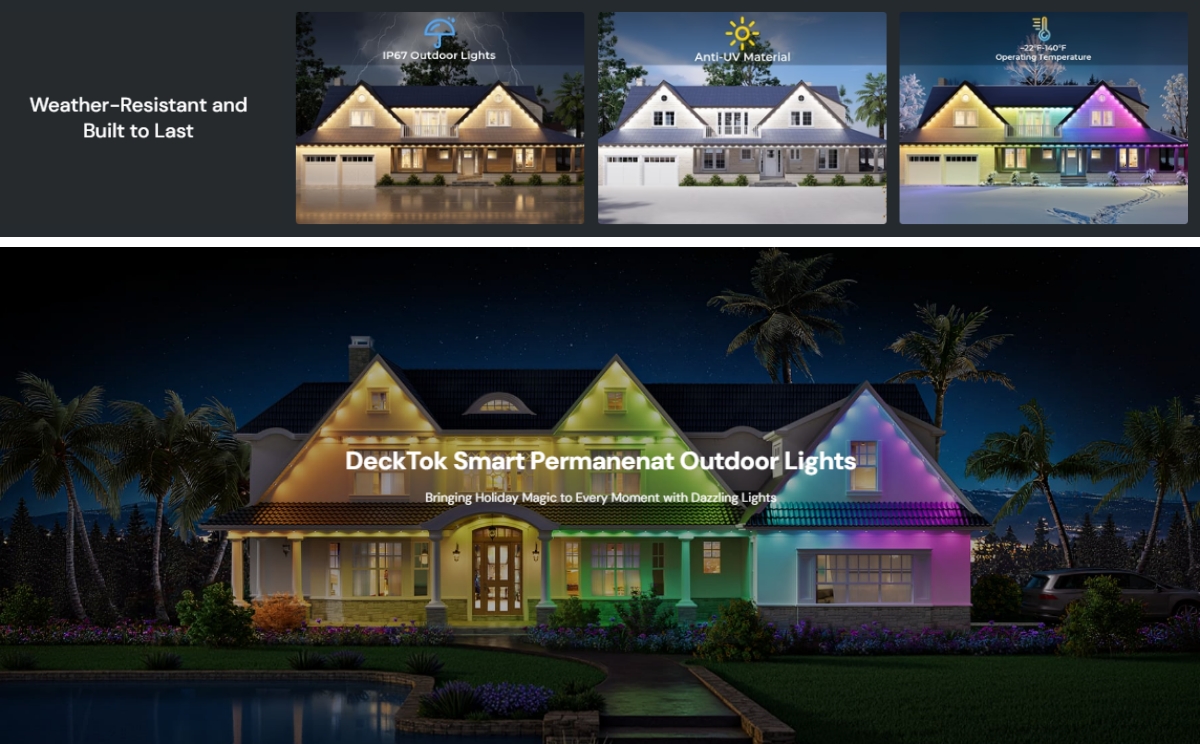 Easy to Install, Easy to Extend:Use the included PE double-sided tape for a quick setup—each unit installs in under 10 seconds. Extendable up to 150ft to easily cover your roofline.