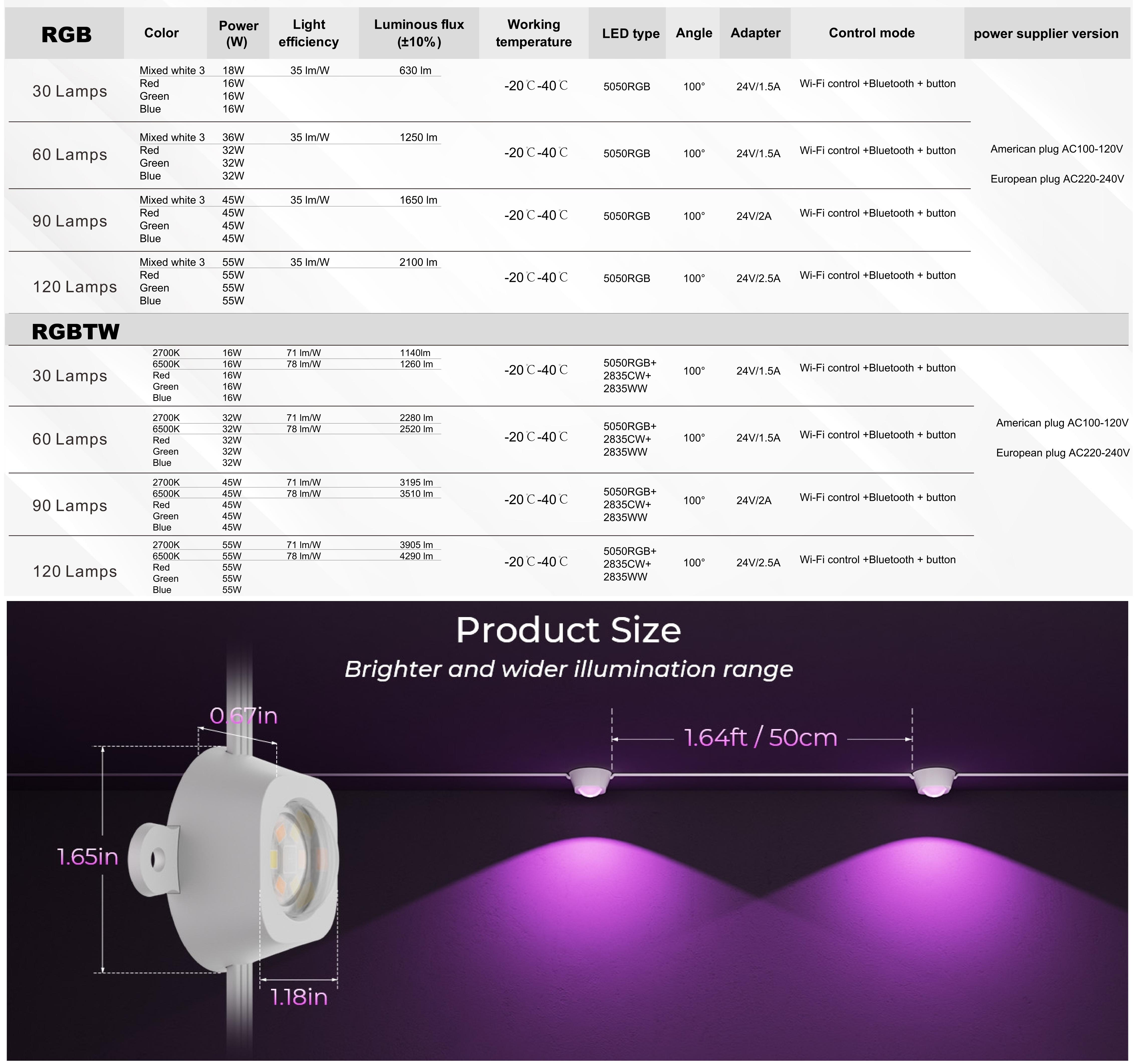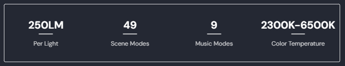 Vibrant RGBWW Effects:Enjoy vivid colors and a tunable white spectrum (2300K–6500K) with brightness up to 60 lumens per light. Perfect for holidays, parties, or daily ambient glow.