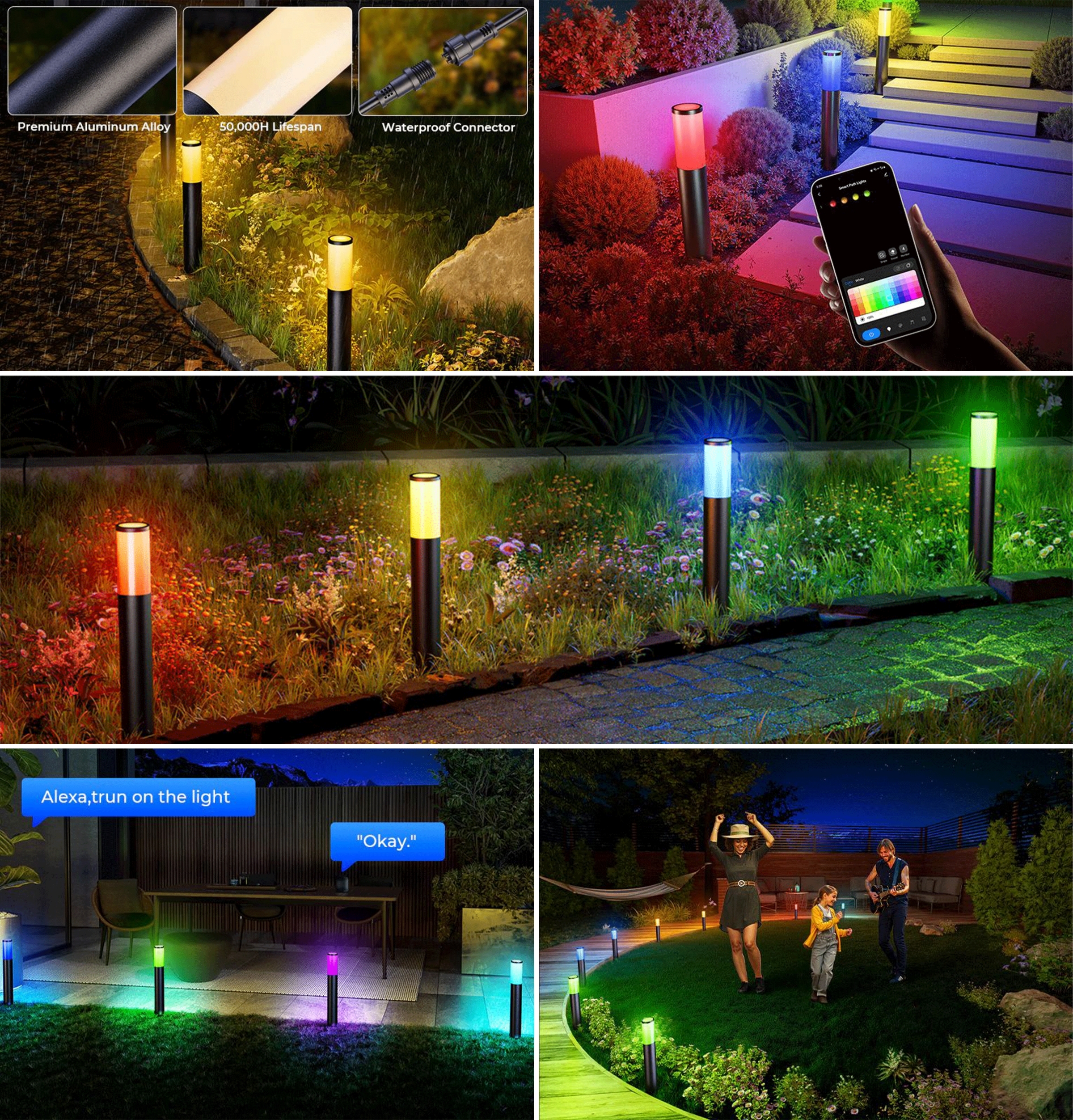 Full Spectrum of Colors: From warm white to cool white, and a full RGB spectrum, DeckTok lights give you complete flexibility over your outdoor lighting.Tailor Each Light to Your Taste: Take full control over the color, brightness (0-100%), and lighting modes of each light. With 16 million color choices and 49 preset scene modes, you're always ready for any event or mood.Reliable Lighting in Any Weather: Rain, shine, or snow, DeckTok pathway lights stand the test of time. With UV-resistant PC covers and a durable aluminum alloy body, these lights are fully waterproof and built for longevity, ensuring 50,000 hours of use.Set It and Forget It: Program your lights with the timer function on the app, and enjoy hassle-free outdoor lighting that adjusts automatically to your schedule.500 Lumens of Pure Power: They provide ample brightness for your path, lawn, or garden. Functional lighting that's as practical as it is stylish.